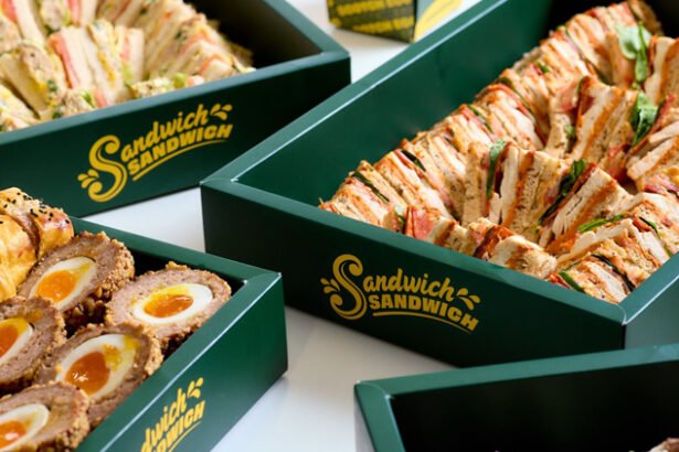 Sandwich Sandwich offers a variety of catering options that feature an assortment of buffets and platters, showcasing their signature deep-filled sandwiches alongside savory pastries, including Scotch eggs, sausage rolls, and…